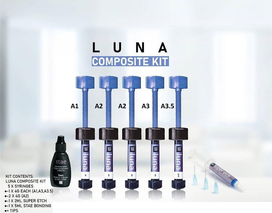 | Shades/Variants | A1 Luna 4g Syringe, A2 Luna 4g Syringe, A2Dentin Luna 4g Syringe, A3 Luna 4g Syringe, A3.5 Luna 4g Syringe, A3Dentin Luna 4g Syringe, B1 Luna 4g Syringe, Bleach B Luna 4g Syringe, Incisal Luna 4g Syringe, Luna 5 Syringe Kit / Etching / Bonding /Access |